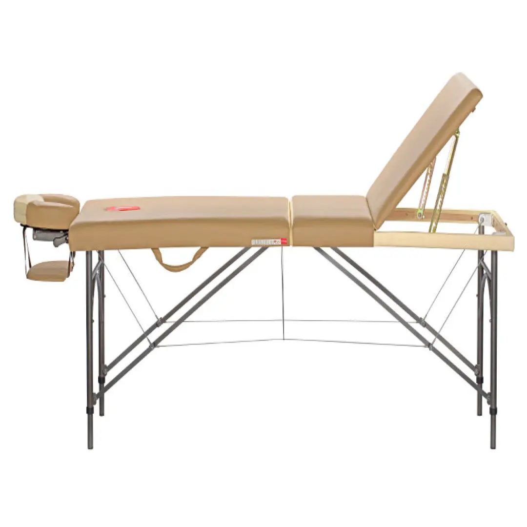 Складная конструкция этого массажного стола привлекает многих покупателей и не зря, эта модель после сборки занимает минимум пространства и при этом легко переноситься.