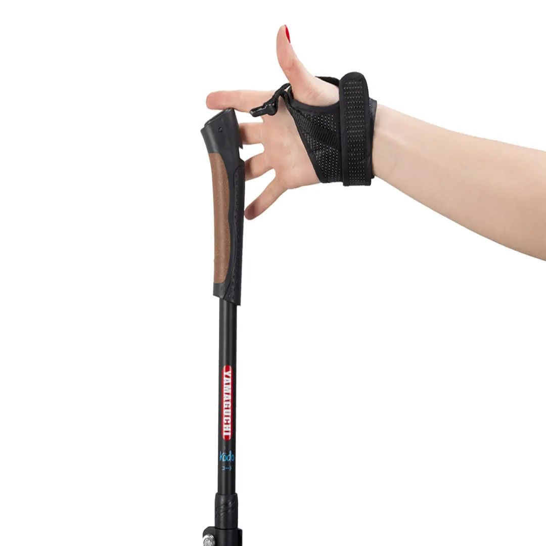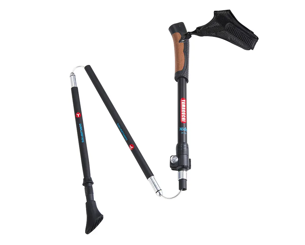 Yamaguchi Kodo имеют регулируемую конструкцию. Их можно использовать людям с ростом от 160 до 195 см. За счет трехсекционной телескопической конструкции и нанесенной сантиметровой шкалы на корпус их просто отрегулировать, установить необходимую высоту. Рукоятка изготавливается из армированного пластика, есть два съемных наконечника, по кисти регулируется за счет ремешка «капкан» - скандинавский темляк.
