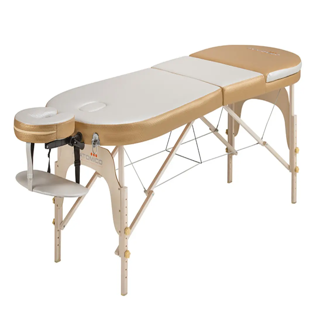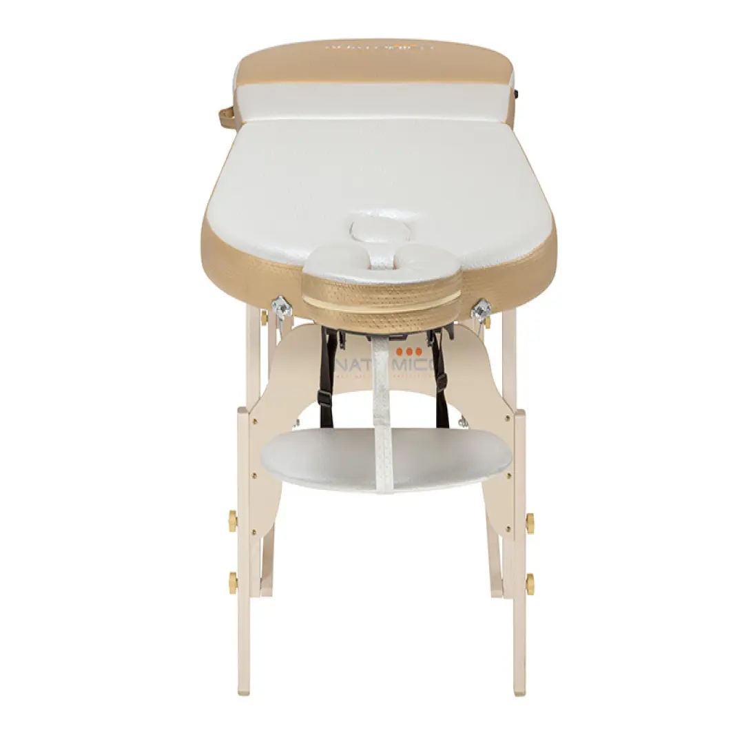 Деревянный каркас способен выдерживать динамическую нагрузку в 370 килограмм. Конструкция, состоящая из 3-х секций с возможностью регулировки наклона края каждой секции, позволяет создать максимально удобные условия, как для посетителя массажного кабинета, так и для специалиста, который оказывает услуги массажа. Еще массажный стол Anatomico Milano оснащен люверсом для лица, что создает дополнительный комфорт для клиента.