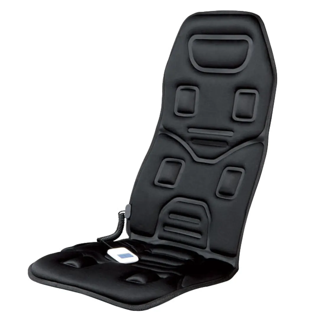 Отзыв: Накидка мягкая, её легко крепить на сидение. Есть 8 программ вибромассажа, таймер, пульт управления. Отлично разминает затекшие мышцы.